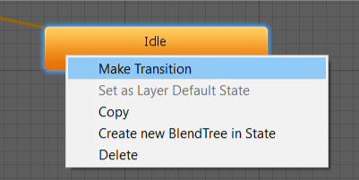 1. Right click on the Idle state and select Make Transition. This starts a transition that follows the mouse cursor.