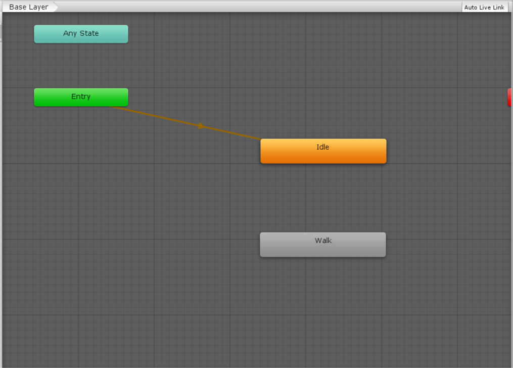 The default state is displayed in orange. In this case, the default state is Idle because you dragged it in first. The default state can be changed by right clicking on a state and selecting Set As Layer Default State.