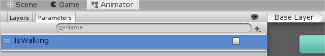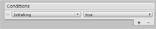 3. The state machine now has a way of transitioning between the two animations, but it doesn’t yet know when to transition. Remember creating the IsWalking parameter? This is what you will use to determine whether the state machine should change animation or stay on the same one.