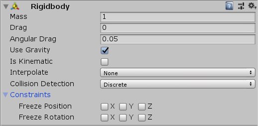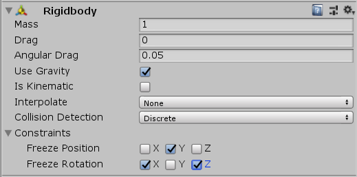 These Constraint properties restrict the directions in which the Rigidbody can move.