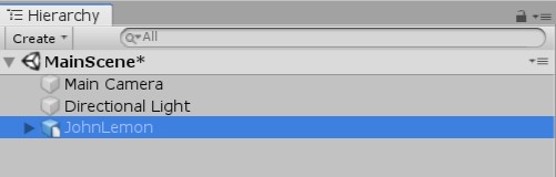 4. In the Hierarchy window, find the JohnLemon GameObject.