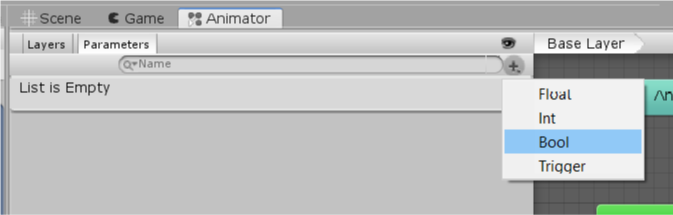 3. Click the Parameters tab on the top left of the Animator window.