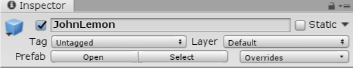 But hold on a second! The JohnLemon GameObject has a blue name and a blue cube icon, but there is a small white piece of paper over the cube. Is the JohnLemon GameObject already a Prefab?