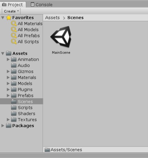 You will see this creates a Scene Asset called MainScene in the Project window.