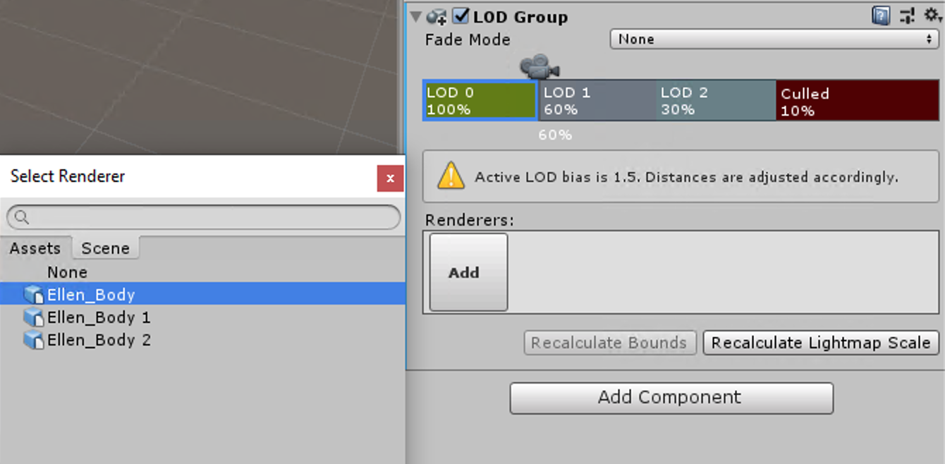 - Click on one of the LODs in the bar (other than the Culled section), then click the Add button in the Renderers section.