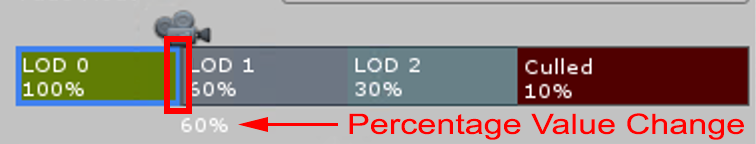 - Adjust each group’s percentage value by dragging the vertical lines between the bars left or right. The percentages listed in the bars determine what level is active when the camera nears the object. (Figure 10)