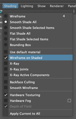 - To make the Mesh easier to see when drawing new polygons on the reference object, turn on the Wireframe on Shaded option under the Shading dropdown in the main viewport menu. (Figure 02)