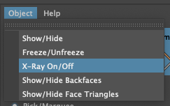 To view the model as semi-transparent, in the Modeling Toolkit panel menus, select Object > X-Ray On/Off (Figure 04). The reference Mesh will become transparent, making new topology easier to see.
