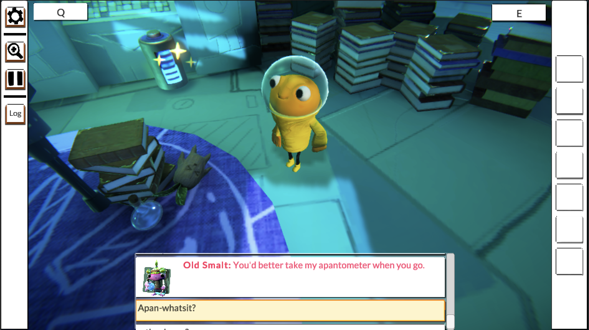 Here the Dynamic Camera setting is turned off for the conversation between Sureswim and Old Smalt in the shop: