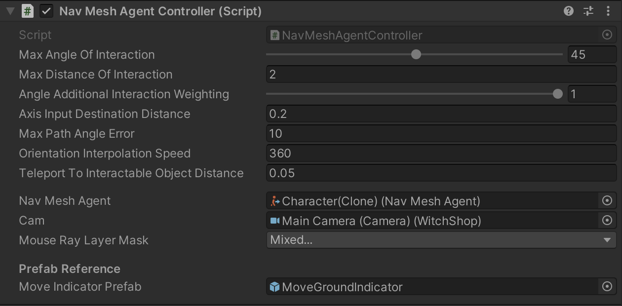 - If the ground is hit, the NavMeshAgentController sets the point that is hit as the destination. If an InteractiveObject is hit, the NavMeshAgentController sets the interaction location for that InteractiveObject as the destination.