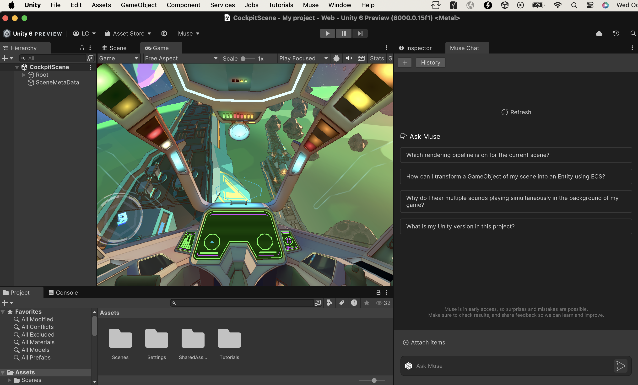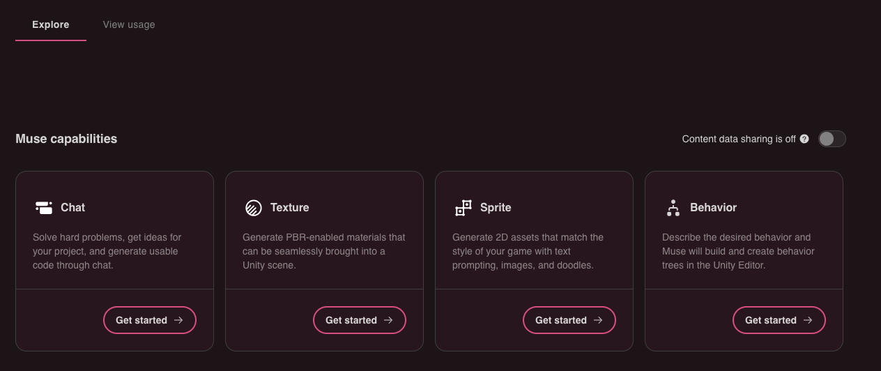 This tutorial will introduce you to Muse’s chat capability – a generative and conversational AI interface and in-Editor Chat-based tool that has been created to answer your questions about Unity's technology and products. You can chat with Muse to solve challenging problems, get ideas for your project, and generate usable code. The large language models employed by Muse Chat are specifically designed to provide you with the most accurate and up-to-date information about Unity.