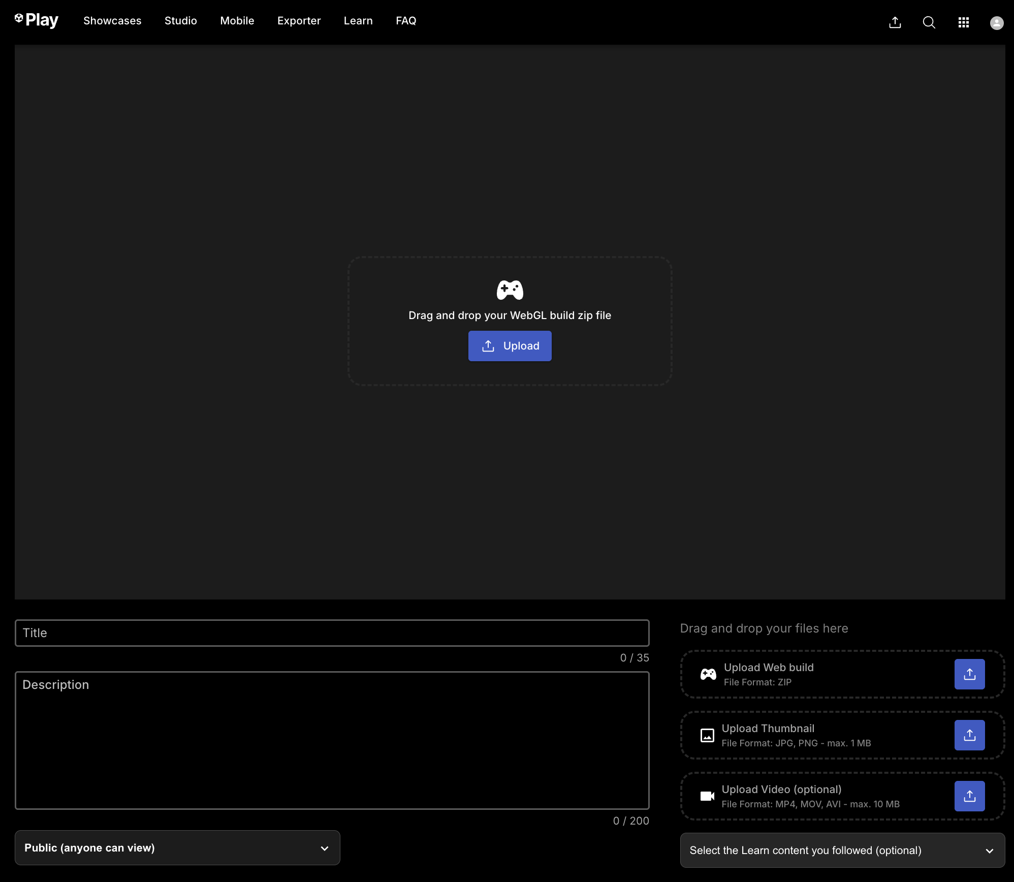 Publishing to Unity Play makes your project interactive and easily shareable with a link. People can play it right in their browser — no need to download anything.