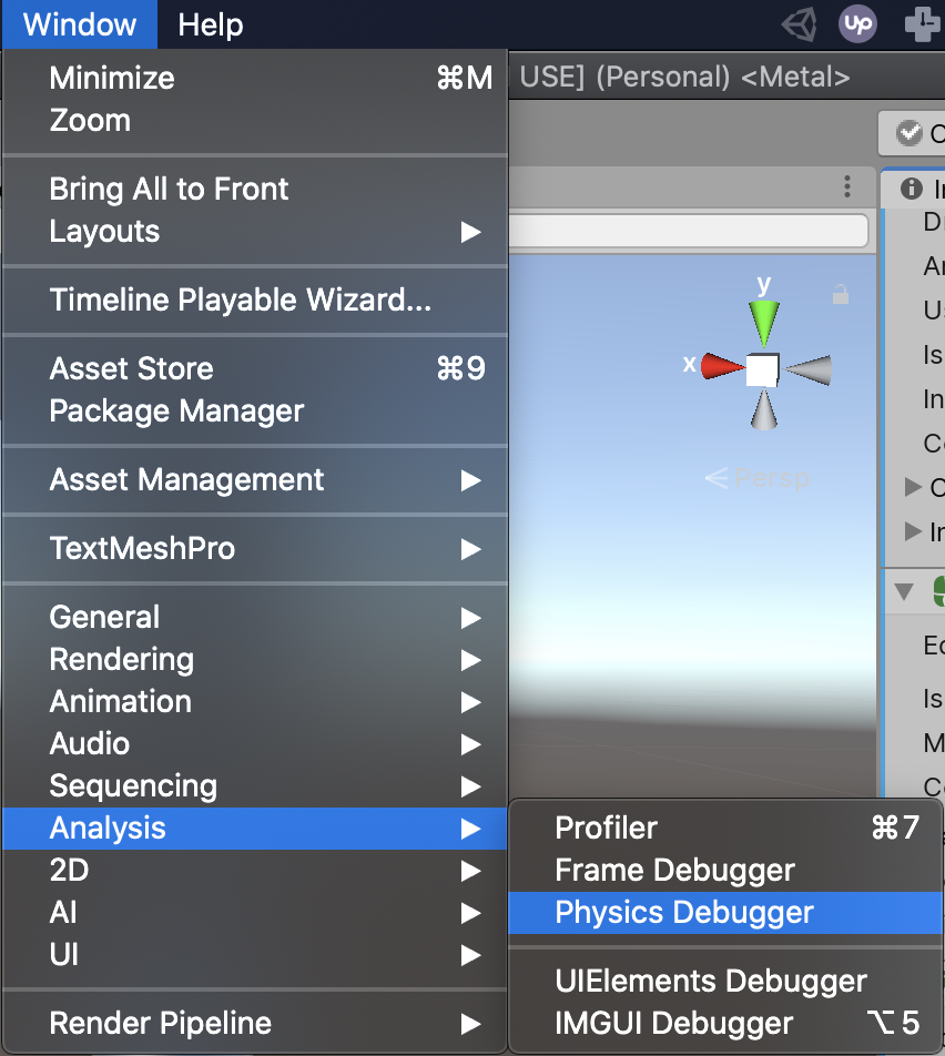 14.) Go to Window > Analysis > Physics Debugger.