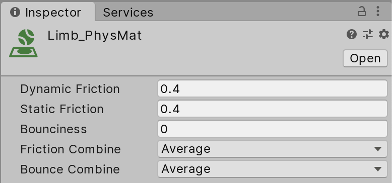 9.) Set the Material variable of the Capsule Collider to the Limb_PhysMat under the Project tab’s Materials folder. This Material will help our Ragdoll move more quickly and stop more slowly when it collides with itself or other objects (Figure 07).