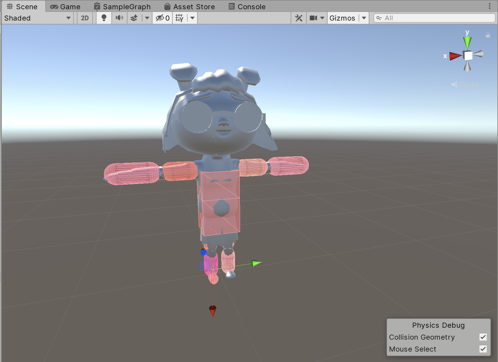 15.) Turn on Collision Geometry to see all the Ragdoll Colliders. Turn on Mouse Select to be able to click and select the bones in the Scene view (Figure 13).