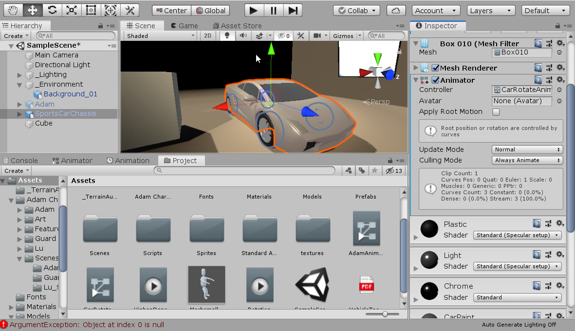 - Drag the CarRotateAnimatorController into the Animator Controller parameter.