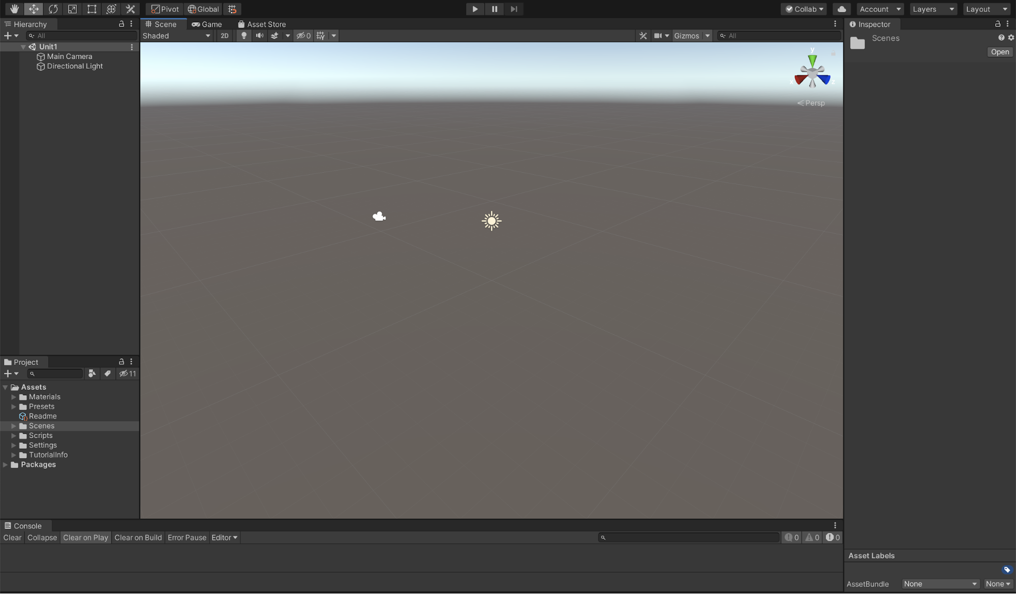 1. To begin, you need to open the “Unit1_StarterFiles” that you started in Unit 1. Once you’ve opened the project you need to open the Scene we named “Unit 1”.