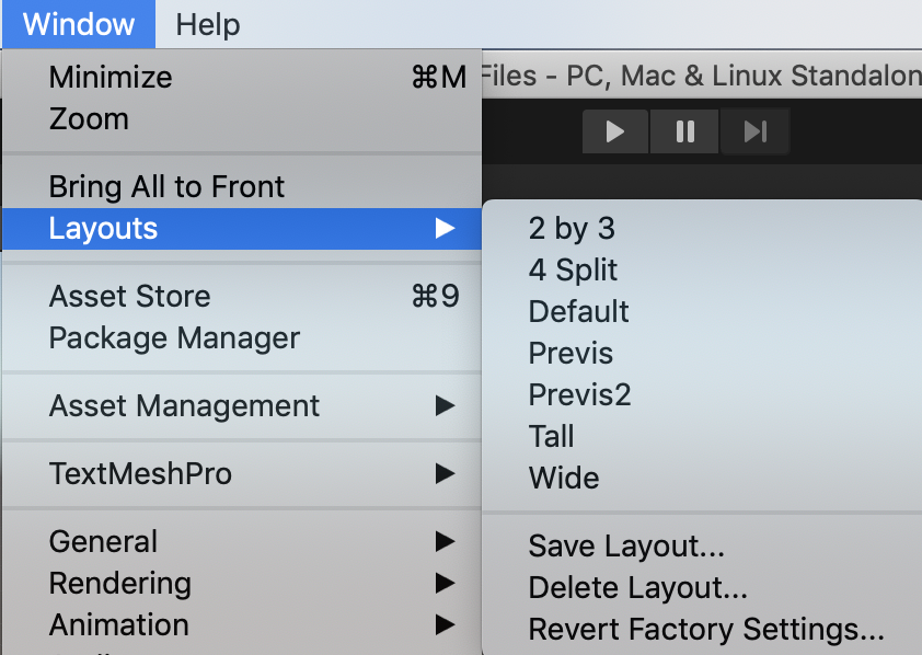 9. Once the layout is to your liking, navigate to Window > Layouts > Save Layout to save your Layout. When prompted, give your Layout a name (such as "Previs") and click Save (Figure 03).