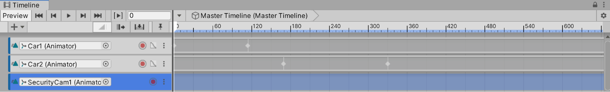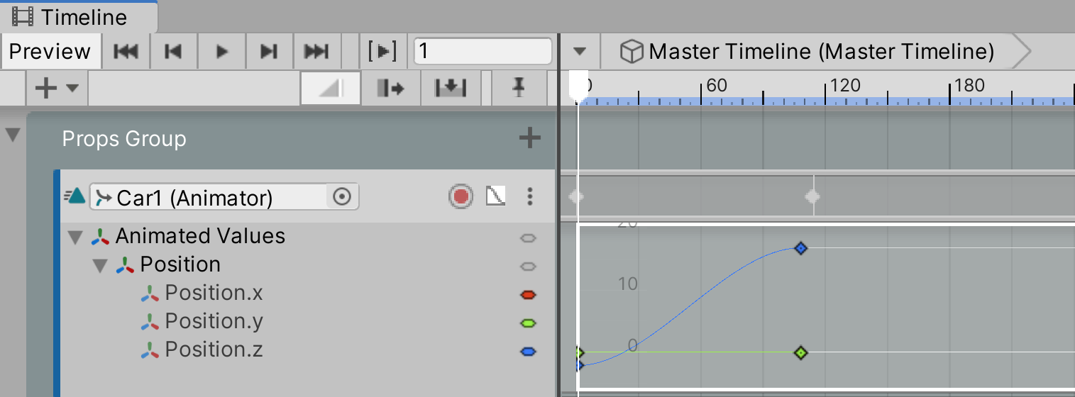 3. You will now see a new Animation Track under the Master Timeline with the Car2 Animator assigned to it.