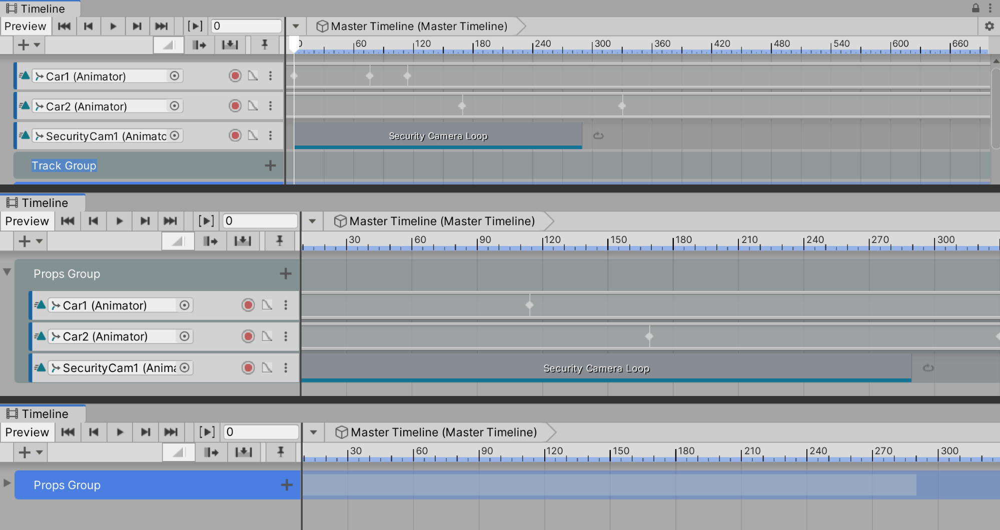 2. Rename the Track Group Props Group in the Timeline, either in the Inspector or by double-clicking the Track Group label.