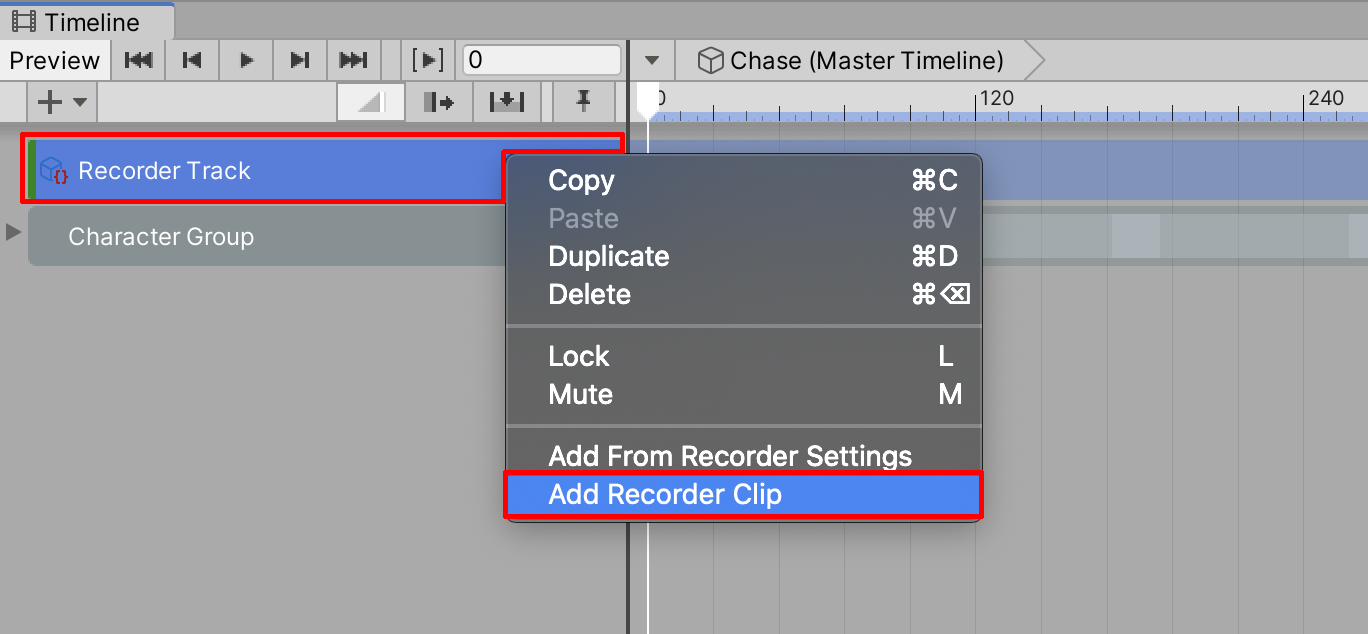 Now that we’ve got the Unity Recorder installed in our project, we’ll be able to create a Recorder Track in our Timeline. This track will allow us to capture all or part of our animation in a .mp4.