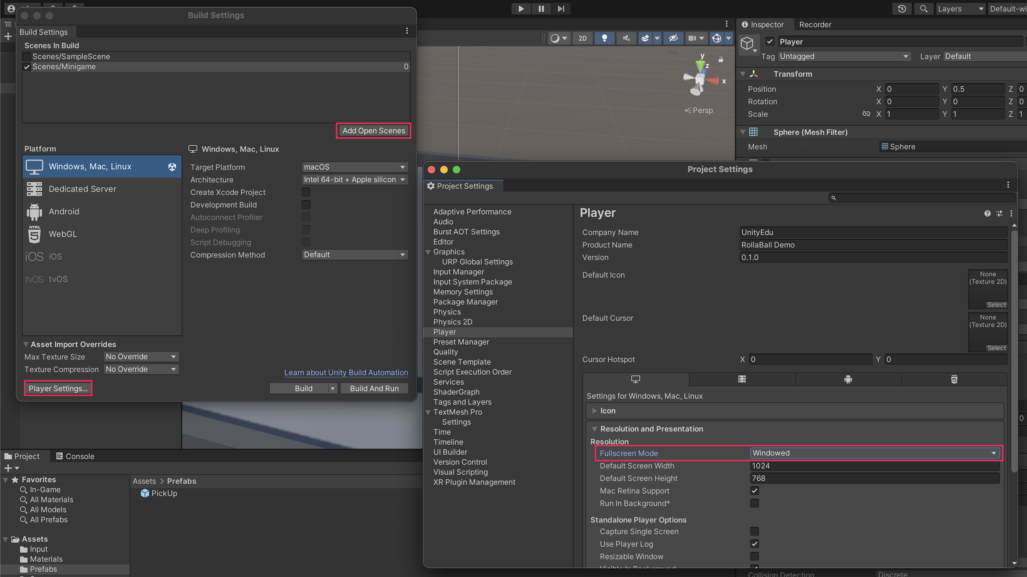 Follow the video or text instructions below to configure your build settings, configure your player settings, build your game, and finally play your standalone game: