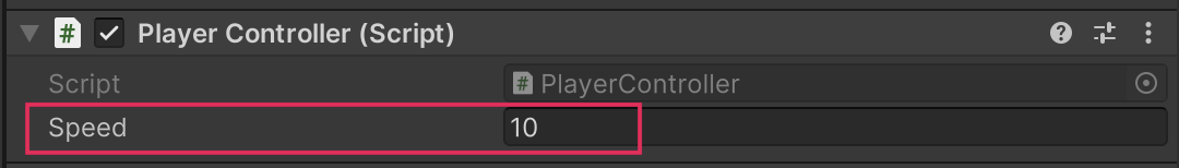 - In the PlayerController component, set the speed value to 10 and test your game.