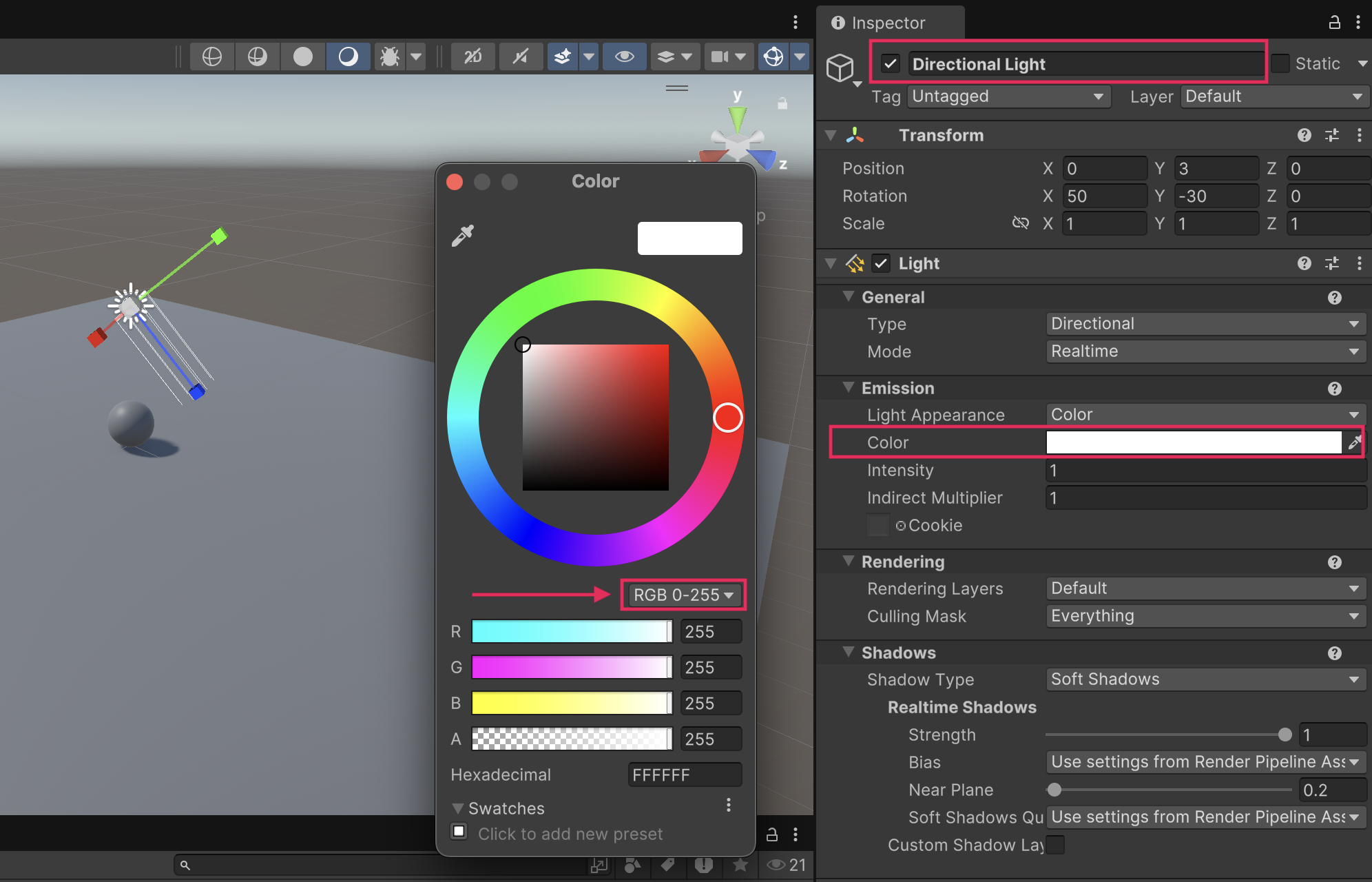 Follow the video or text instructions below to assess the Directional Light, then change its color to white: