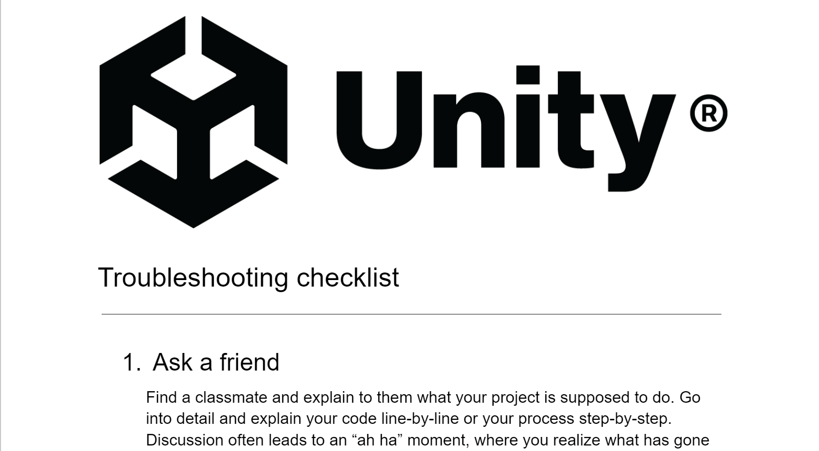 - Prepared your strategies for teaching Unity effectively, such as co-learning, managing differentiated pacing, troubleshooting, and assessment.
