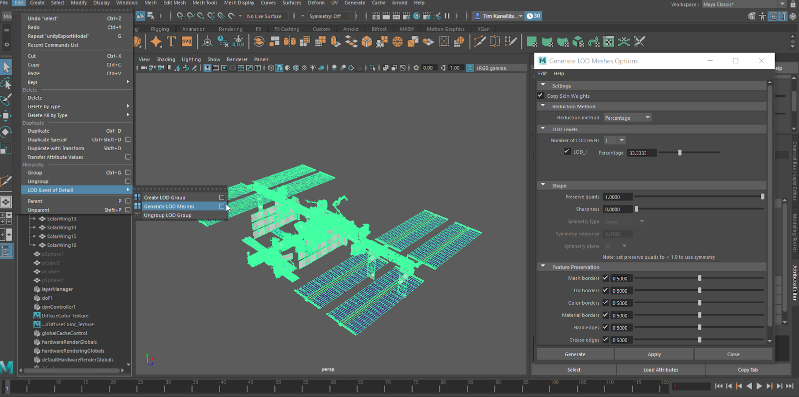 In this challenge, you will create LODs for the International Space Station model in Maya.