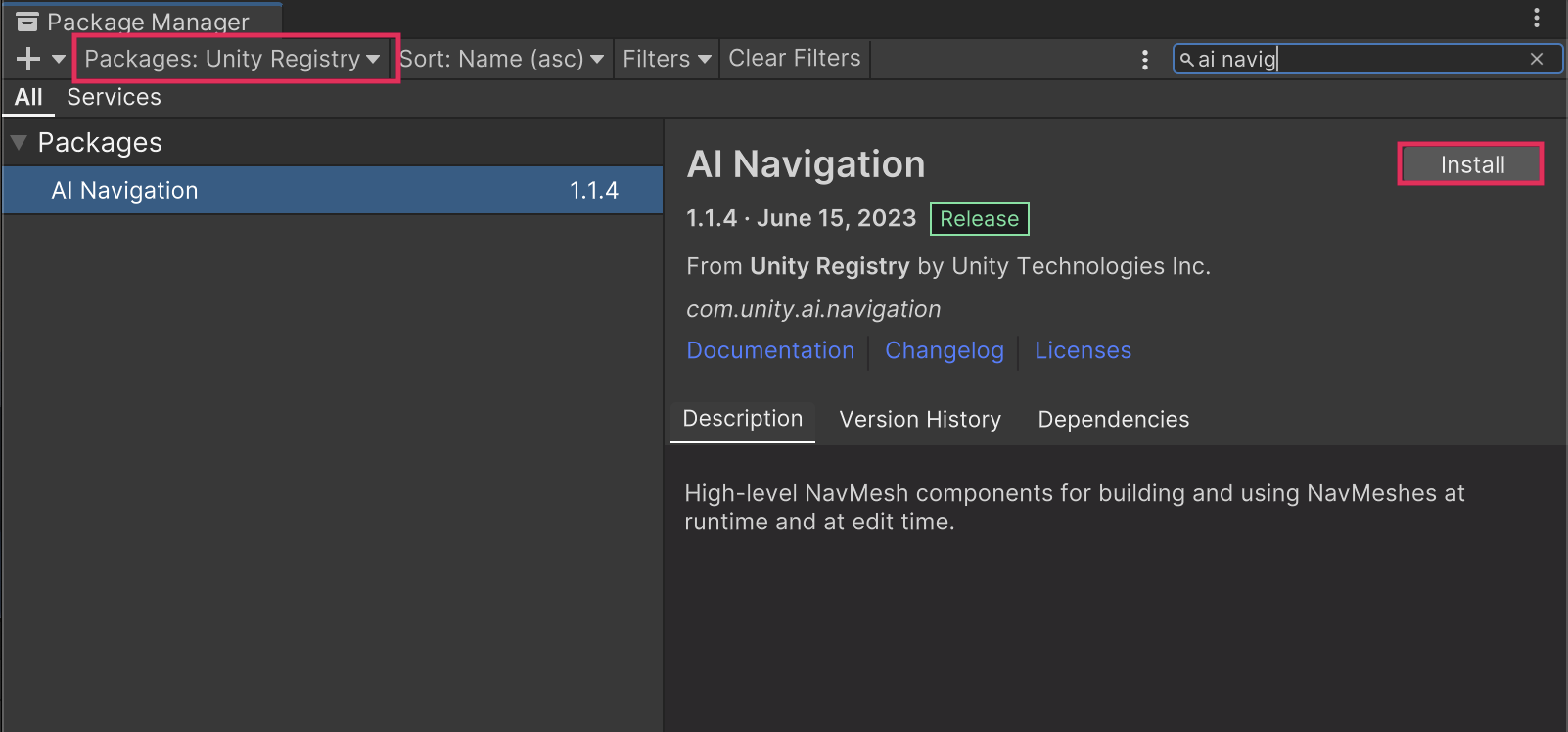 2. Install the AI Navigation package