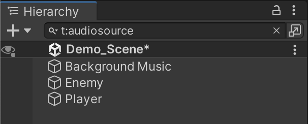 For instance, if you want to find all GameObjects with a Light component in your scene, enter "t:light” into the search box. To locate GameObjects with an AudioSource component, type "t:audiosource”.
