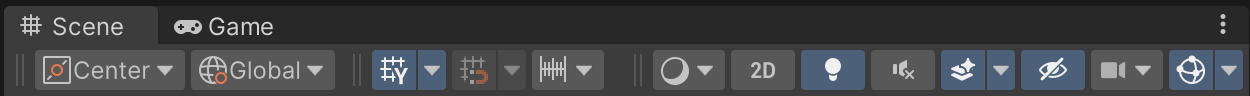 The toolbar at the top of the Scene view contains various tools for manipulating GameObjects and navigating the scene.