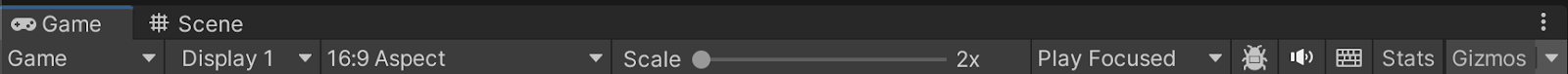 The Game view is where you test your game. There are many features and shortcuts in the control bar that can enhance your testing process. Just like you did with the Scene view, rather than going through each one here, you should take some time to explore the control bar, experiment, and learn what each option does.