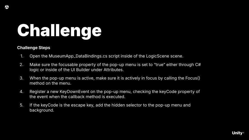 - Understand UI element queries and event callbacks to interact with UI using logic.