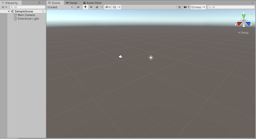 The default 3D Scene comes equipped with two important GameObjects, which are listed in the Hierarchy window: