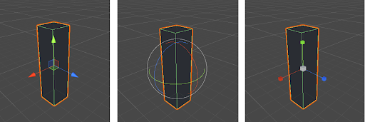 For each of the transform tools, a Gizmo appears that allows you to manipulate the GameObject along each specific axis. As you manipulate these controls, the values in the Transform Component change accordingly.