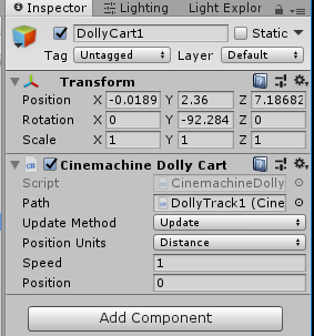 - Select the Dolly Cart in the Hierarchy window and make sure the Dolly Track is assigned to the Path parameter.