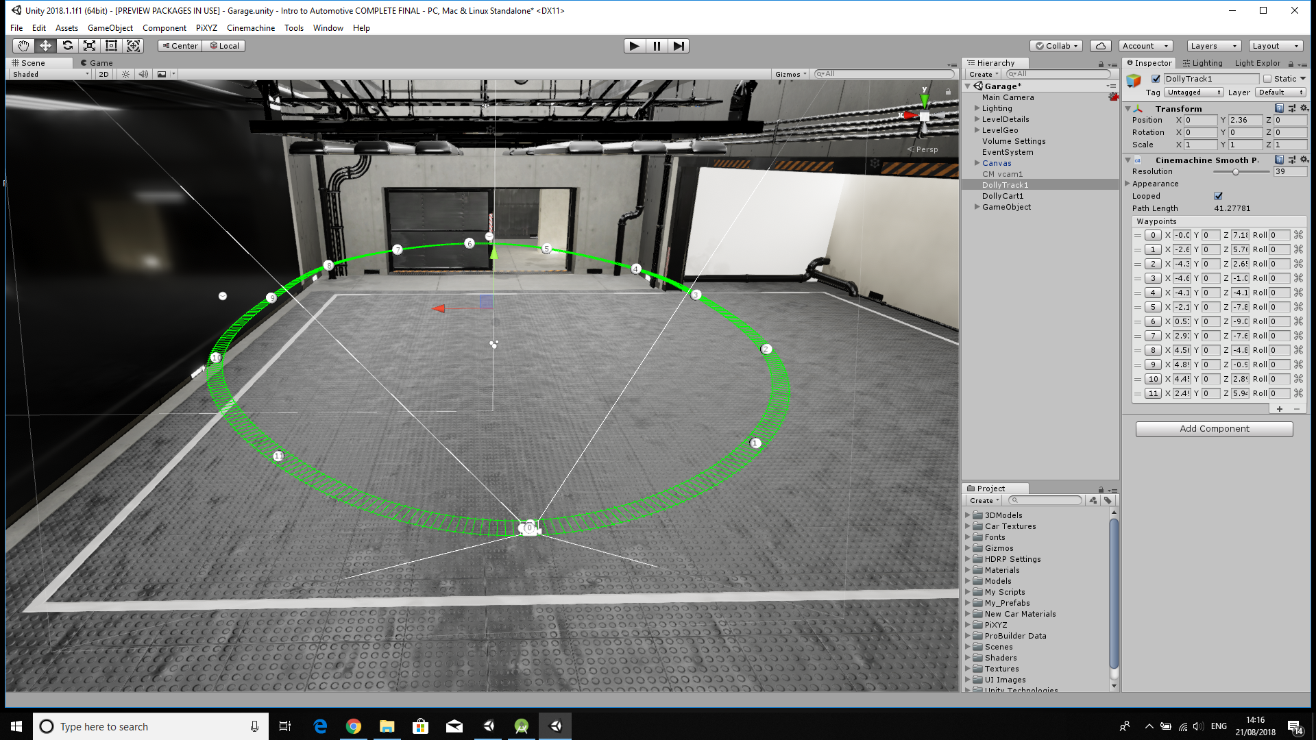 - Select the Dolly Track in the Hierarchy window.