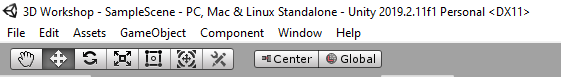 The Hub will close, and your Unity project will be generated. When it’s complete, the Unity Editor will launch. The Editor window ribbon will list your project name, current Scene name, build target, and Unity version (Figure 03).