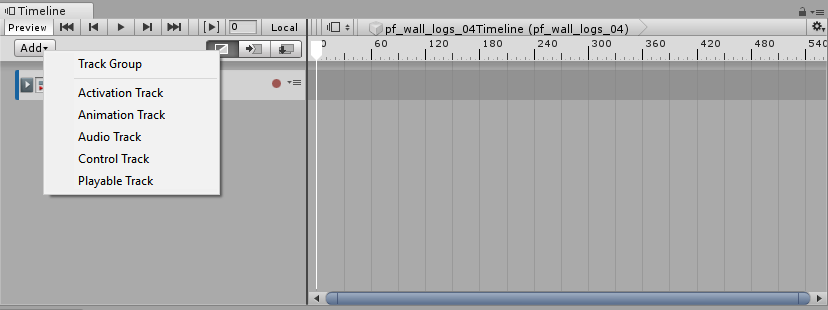 There are a couple of ways to add a track to the Timeline window. The simplest method is to click the Add button and select the type of track you wish to add.