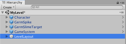 1. Hierarchy では、LevelLayout GameObject が選択されたままになっていることを確認します。