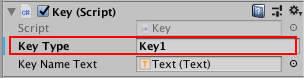 3. Inspector で、key コンポーネントを見つけます。Key Type フィールドで、キーに一意の名前を付けます。