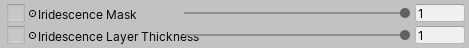 - Iridescence Layer Thickness: This determines the thickness of the iridescence; low values make the iridescence thinner.
