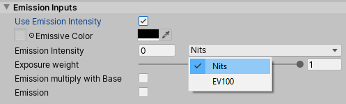 - Use Emission Intensity: Determines whether to use the Emissive Color to determine Emission intensity, or (when enabled) a specified intensity value in Nits or EV100 (Figure 13).