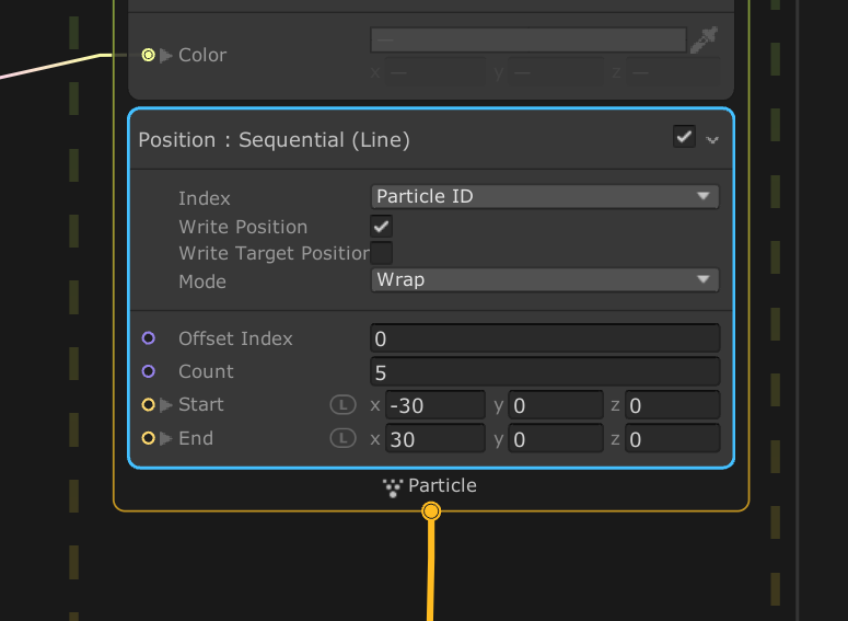 - This looks great, but what if you want to create a more realistic series of fireworks? One way to do this is with a sequential position block. Similar to how you added the AABox block, now try searching for the Position : Sequential (Line) block and add this to Initialize Context instead of your AABox block.