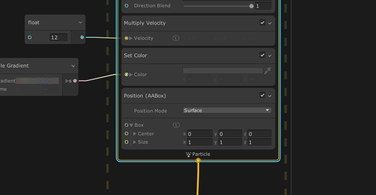 With Unity’s Visual Effect Graph, you can use position blocks to define a space from which particles spawn. Position blocks are configured as basic shapes; you can use these shapes as volume, surface, or thickness areas for spawning particles.