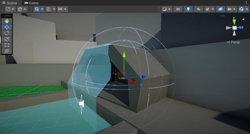 3. Move the Cave Reverb object to the center of the cave and adjust the minimum distance to take up the majority of the interior of the cave.