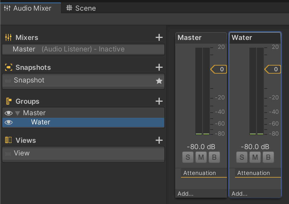 1. To open the Audio Mixer window, go to the main menu and select Window > Audio > Audio Mixer.