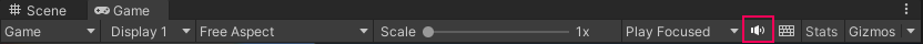 8. Check to make sure that audio is not muted in Unity by going to the game view, and checking that the ‘Mute Audio’ icon in the upper right hand corner is not selected.
